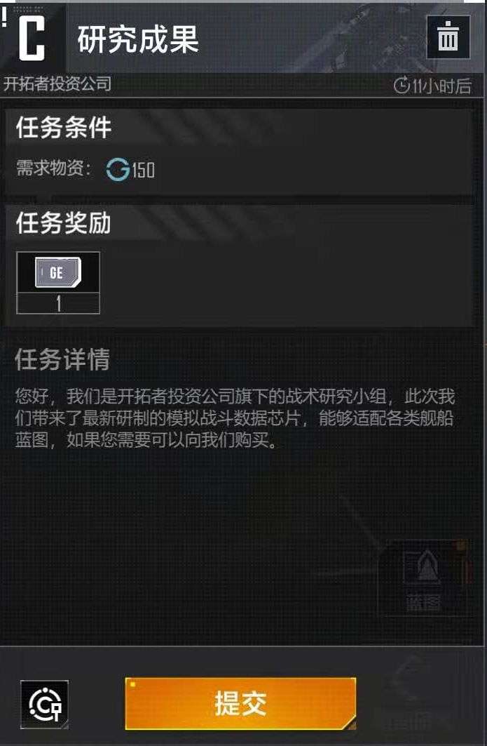 上线勤快的基本都能接到随机任务,当看到基地附近出现白色的感叹号的时候,就代表委托任务来了,目前有收集物资、前往联络、封锁、探测与剿灭海盗NPC这几种,奖励有蓝图数据、资源等。