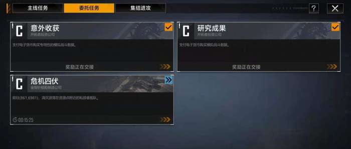 委托任务就是大地图上接到的随机任务了,初期最多可以同时进行10个任务(可以升级联络指挥中心才能提升上限,2级基地解锁),超过上限后就接不到新的任务了。