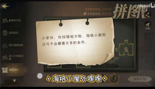 位置:在海格小屋的地上进行寻找乱跑的嗅嗅,找到后点击嗅嗅,点击挖出来的金币即可获得第三块拼图碎片。