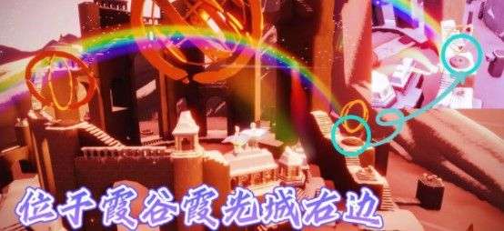 4.任务四:前往霞谷的滑冰场,然后达到霞光城,在霞光城入口的右侧可以看到彩虹,蜡烛就在彩虹的下方,位置如下图所示。