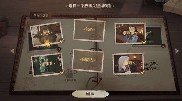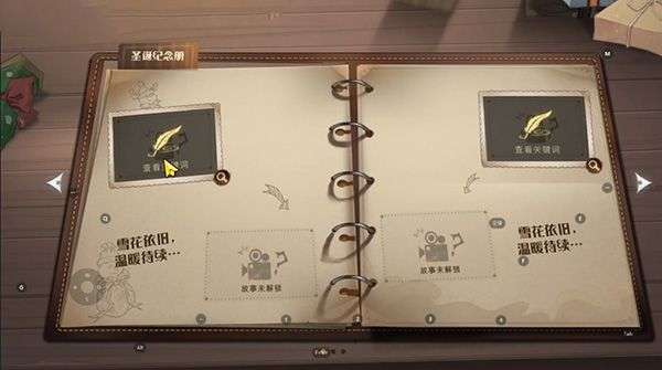 任务一:点击任务后箭头→,进入“圣诞纪念册”,点击“查看关键词”,选择关键词,之后点击观看按钮观看内容,阅读两次“圣诞纪念册”即可完成任务。