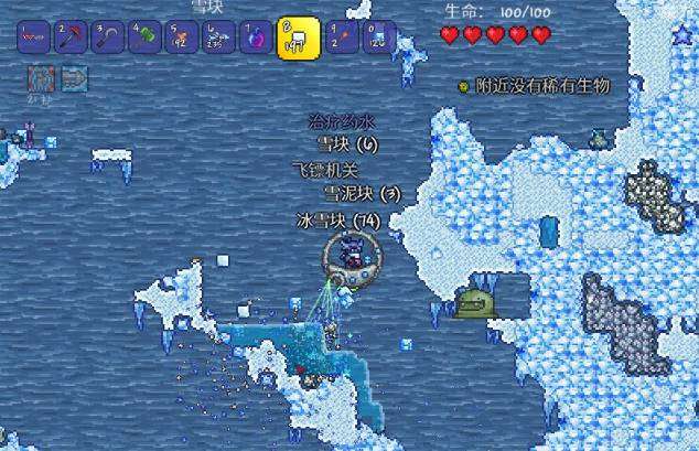 4.在泰拉瑞亚地下雪原群落中,找到蓝色的冰雪箱(注意,不是地牢中的冰冻箱),在雪原小屋中很高概率出现,可用金属探测器探索。