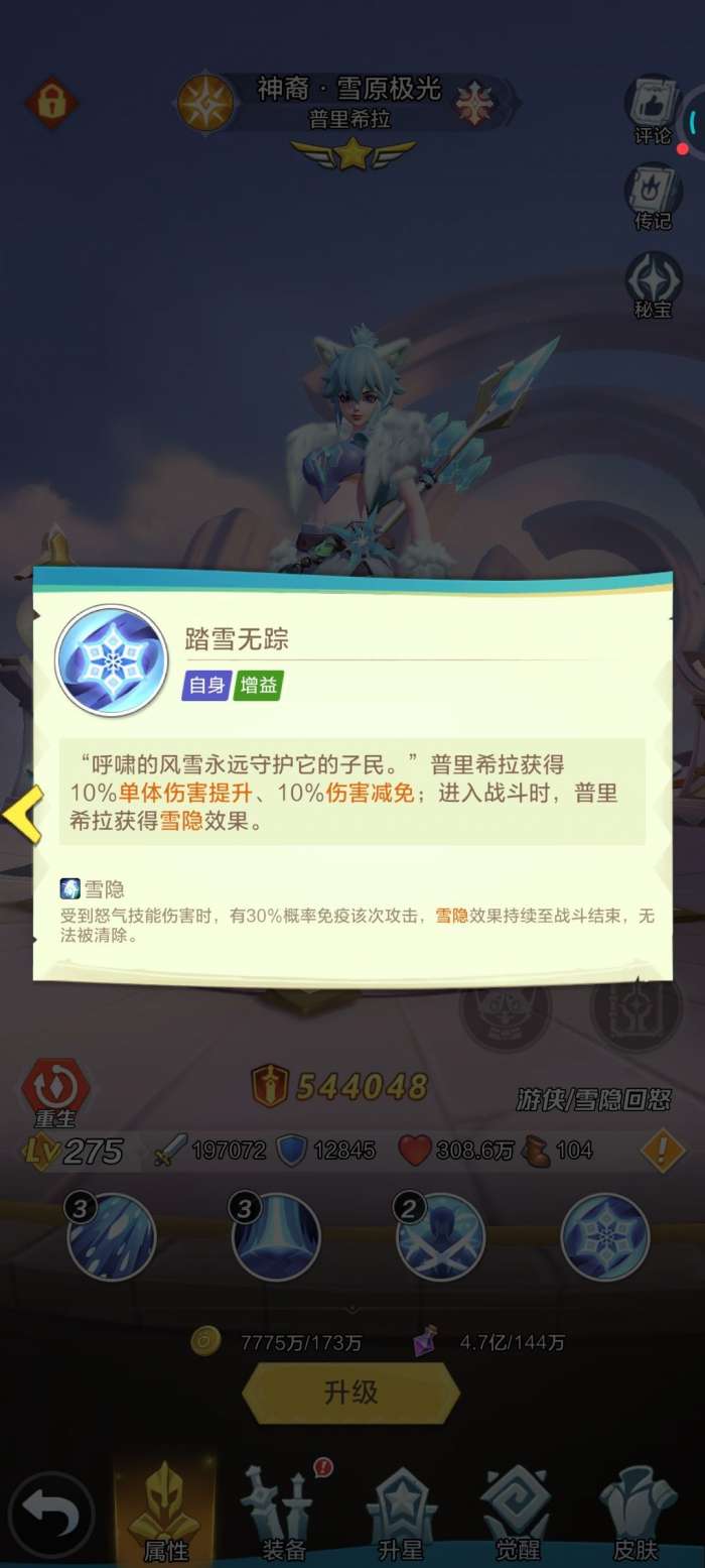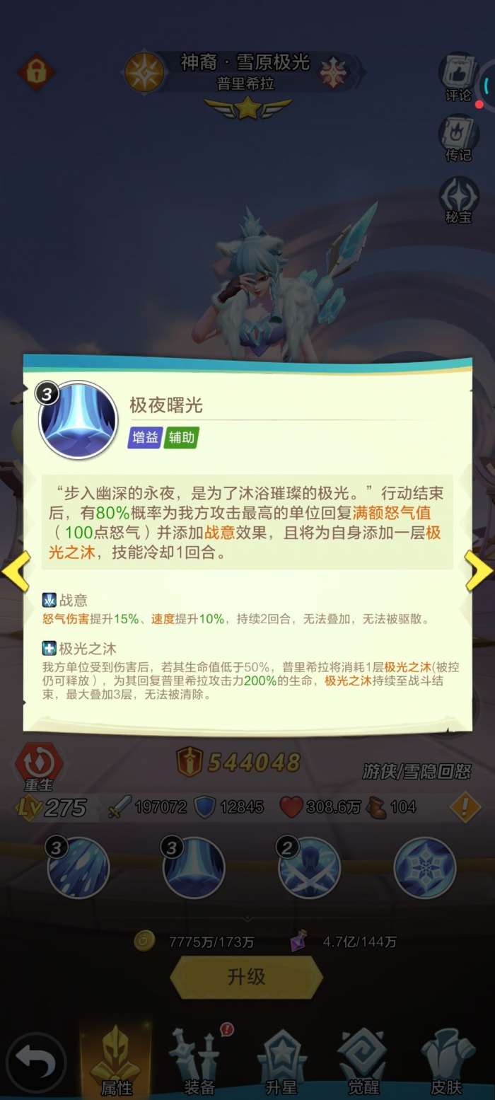 ③雪隐,这个30概率不吃怒气技能,看着几率很低,但是很香!做挂件的时候最头疼的就是挂件站住脚,它可以概率性的在主c的狂轰滥炸下无伤出苟2回合的普攻回合(第二回合多数都在普攻回怒)。