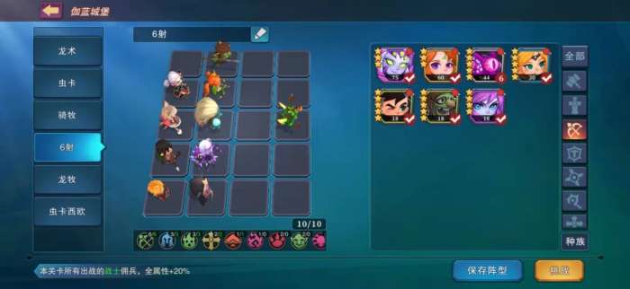 珈蓝需要整体练度,单练一队肯定没戏,这里我个人推荐分成4队,按照比较稳的顺序为6射,虫卡,龙术,骑牧,接下去我一个个讲: