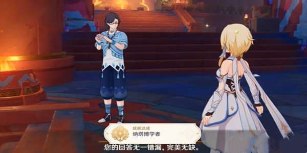 3、选择回答完毕后,即可达成纳塔博学者成就。