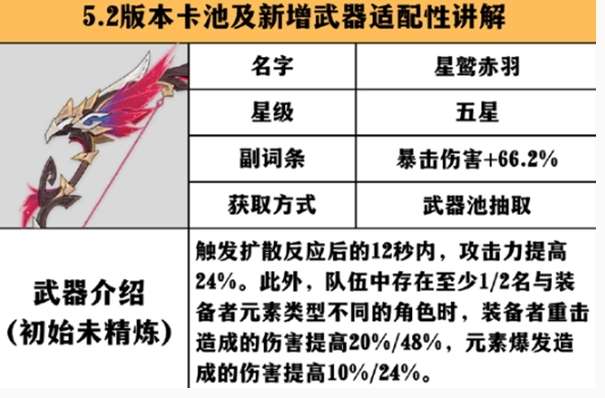 《原神》在5.2版本上线了四把全新的武器,分别是星鹫赤羽、缀花之翎、乘浪的回旋和厄水之祸,其中有很多玩家不知道星鹫赤羽适合给谁用,接下来就跟小编一起来了解一下吧。
