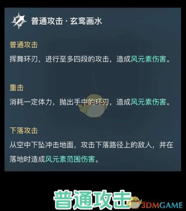 从空中下坠冲击地面,攻击下落路径上的敌人,并在落地时造成风元素范围伤害。