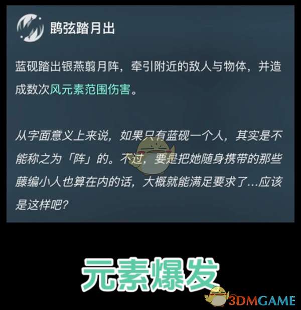 蓝砚踏出银燕翦月阵,牵引附近的敌人与物体,并造成数次风元素范围伤害。