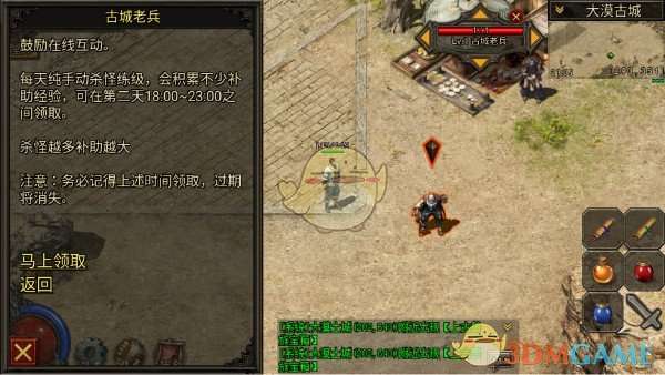 5、各位勇士们到了31级之后,在武器铺老板处领取金矿任务,3个金矿换5000经验.7个金矿换2万经验,15个金矿换4万经验,每天一次