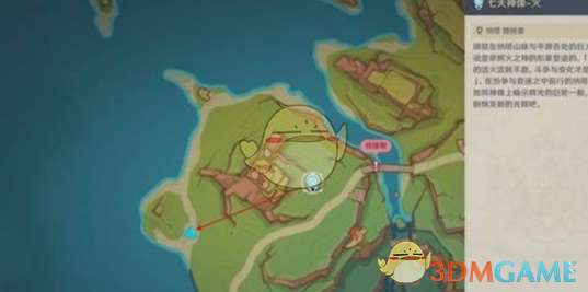 1、首先来到花羽会七天神像处,到达后往西南方向海岸线走