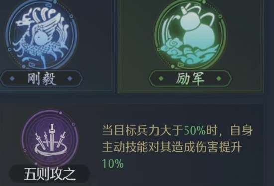 其次可以搭配一些加速整体阵容输出次数的能力进行提升,这里可以选用的此类兵法就是集气,这类兵法带来的效果当中可以带来一定的辅助效果,这里就可以考虑善谋这类兵法,这类兵法提高的智力属性对于诸葛亮来说是比较用的,而且从其中全面提升的输出效果都是可以带来不错的,这里根据军略类型作为主要的选择类型的话,只要是大家兵力数值上面大于50%的时候,使用其中的主动技能都可以对敌人的伤害带来白10%左右的提升效果,所以根据这样的效果来说,诸葛亮在其中可以带来的谋略阵容加成就比较多。