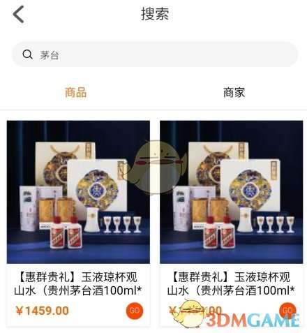 2、搜索出来的结果中可以选择茅台零售或者团购;