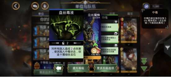 3、终极特性:强力毒素 对陷入中毒和织网状态的敌人造成三倍剑宝石伤害 。 这是盘丝魔蛛的核心质变特性。