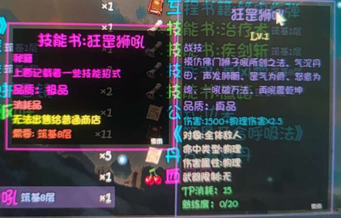 2.狂罡狮吼(目前存在bug,该技能书掉落有可能被吞,原因不明,我也是受害者)