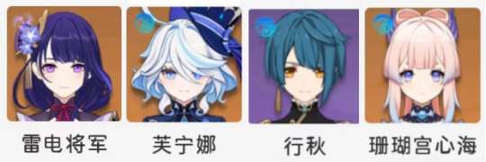 雷电将军+芙宁娜+行秋/夜兰+任意水雷奶