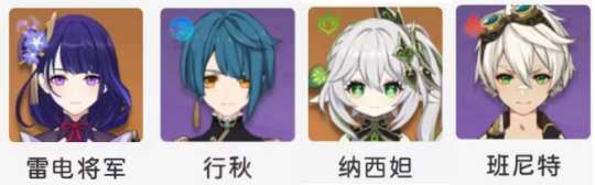 雷电将军+纳西妲+行秋+班尼特/任意草奶