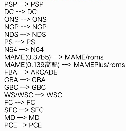 街机类游戏的存储位置在FBA/MAME/MAMEPlus,其他的游戏目录根据上图提示进行安装即可。