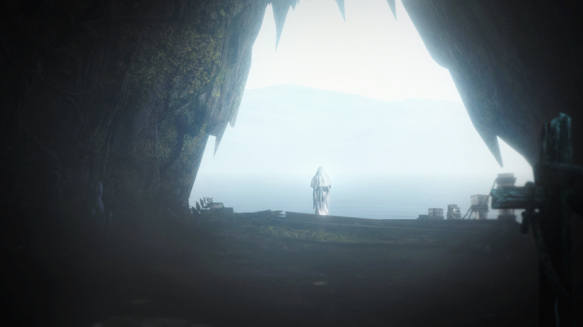 中阴(又作“中有”)是所有死者都会抵达的终点。环绕大树的辽阔河川为永不止息的时间洪流分隔着常世与现世。死者们会从此岸开始漂流,在树洞中度过一段时间后再出发前往彼岸,偶尔也会出现像深芳野这般割舍不下现世而伫足不前之人。深芳野显然心存留恋,她将在踏足彼岸之前向主人公倾诉短刀的秘密和主人公的使命。