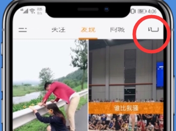 1、打开快手app,点击右上角的“视频拍摄”,在红圈所示位置,