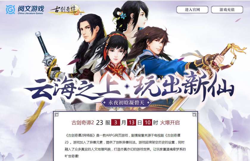 注:《古剑奇谭》系列三部单机作品均为上海烛龙开发,网元圣唐为发行商。