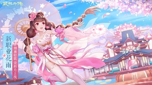 武林之中有一个神秘的门派——花雨,门下弟子皆为女子且武学神似舞蹈,颇为优美。在花雨的美艳外表下,隐藏着令人不敢小觑的实力,武学以高爆发、多控制、大范围伤害著称。江湖中人只闻花雨之名,却无缘进谷中一观。