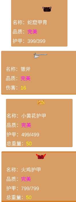完美:蛇窟甲胃,银斧,小黄花护甲,火鸡护甲,石盾,蜜蜂翅膀,冲锋枪,黑骑士护甲