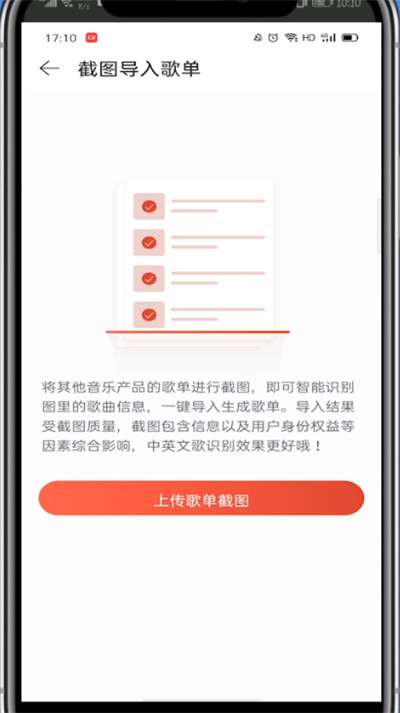4、上传刚刚截图的酷狗歌单即可导入