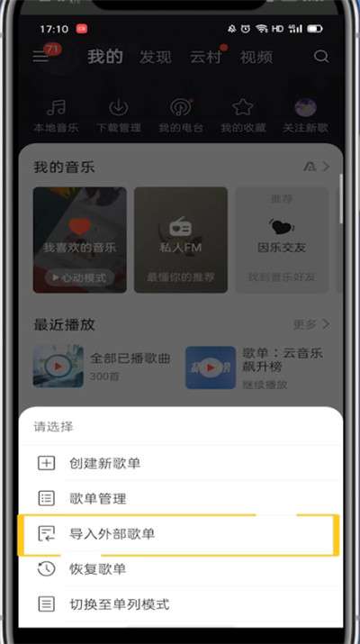 3、点击导入外部歌单