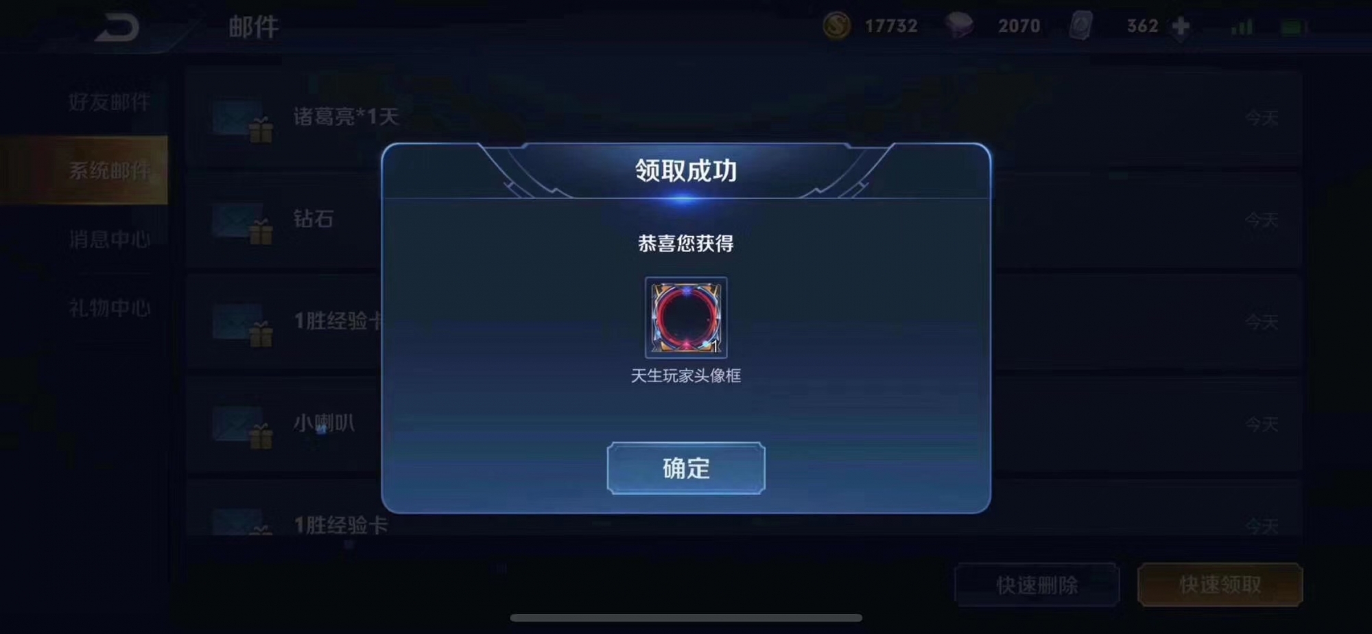 王者荣耀天生玩家头像框领取方法
