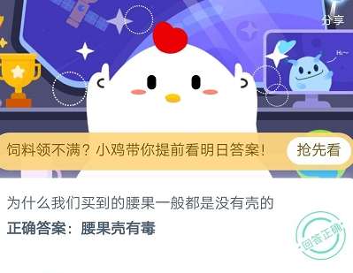 今天蚂蚁庄园每日一答的题目是“为什么我们买到的腰果一般都是没有壳的”下面小编为大家带来今日份答案,每日持续更新,欢迎大家继续关注我们!