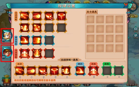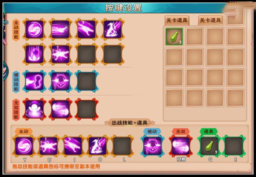 ③鼠标拖动技能,把技能放想你想要放的按键位置上即可(技能与道具只能放在对应的栏目按键上)