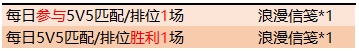 总共可通过对战任务活动获得浪漫信笺*6