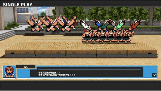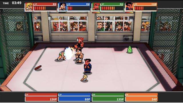 从玩法上来看,比起《热血行进曲 大运动会》的综合性运动来看,本作只限定在无规则格斗方面显得有些单一,主要分为剧情模式与对战模式。剧情模式下玩家可以任意选择一支队伍参加战斗,不同视角下能触发不同的剧情,但最终的结果还是要一起参与到无规则混战中来。没有太多的细节和讲究,战斗开始后我们目标就是击倒眼前所有的敌人,没有规则、分秒必争,超过180个不同的角色和250多种特殊动作更是极大的加强了游戏的战斗兴趣,不过不可否认的是,游戏角色直接还是存在强弱之分,并且游戏的胜利采取的是计分方式,因此对于如何巧妙地夺得最终胜利对于玩家还是一件需要思考的事情。