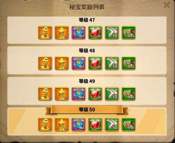 活动结束后根据最高等级发放秘宝奖励