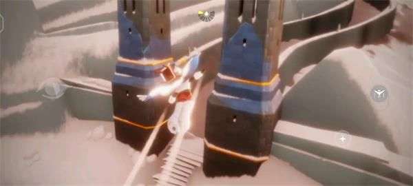 继续往前飞,经过上图的城门后,往下图中旋转的球体建筑飞行。