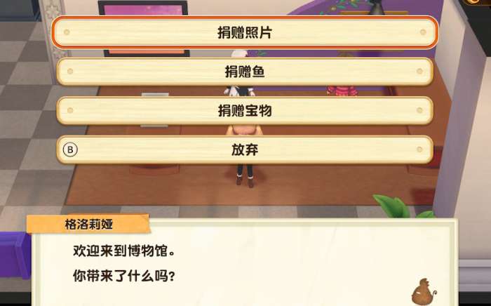 初次进入小镇上的博物馆可以获得照相机,以后发现的神秘宝物,野生动物照片,钓上的鱼都可以捐献给博物馆,还能鉴定宝物……玩过动森的玩家应该都懂。
