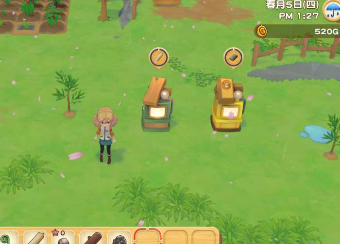 种完作物后,剩余的体力尽量用来砍树除草砸石头,扩大耕种面积的同时,也是在完成修复鸡小屋的准备工作。