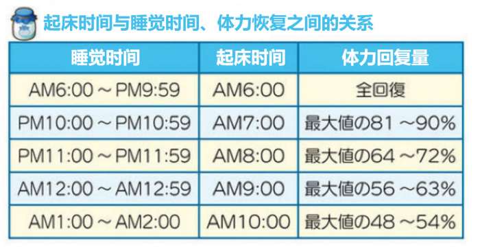 建议最好在每天晚上十点之前就寝,否则会导致第二天体力无法回满,并且起床时间延迟。