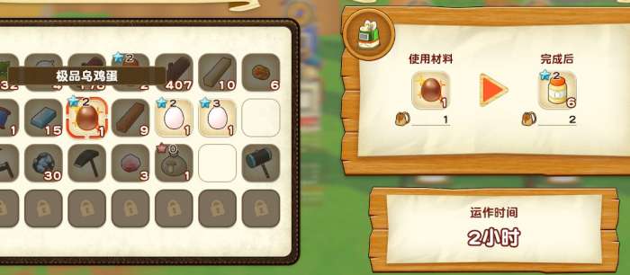 煎鸡蛋:鸡屋维修完成,驯服鸡之后每天产的鸡蛋即可制作。