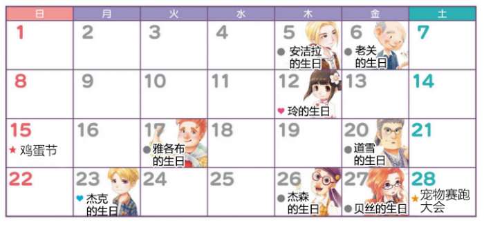 今天是杂货店老板安洁拉的生日:喜欢奶酪、蛋黄酱、酸奶、兔毛、羊毛、胡椒粒、砂糖等,最喜欢春风行进曲,可以在花店制作。