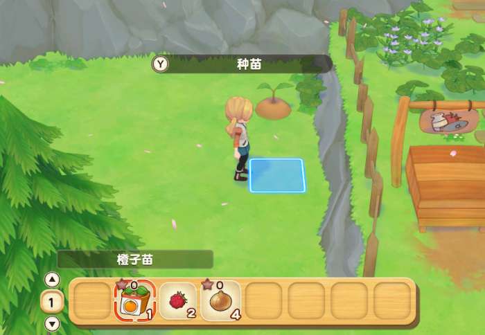 找到杂货店之后,购买咖啡苗和橙子苗回到农场里种下。这是连作果树,15天成熟,所以越早种越好,而且不用浇水不用锄地,直接就能种。樱桃苗不用买,因为第二天教学会送。
