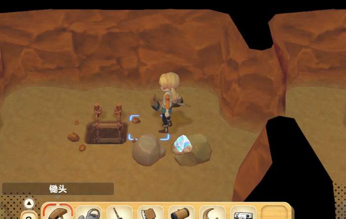 挖矿除了需要锤子以外,还需要锄头,某些特殊矿点可以挖到宝石原石。