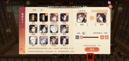 但是想等到特定的一对要等到猴年马月,所以我们可以使用邀请函邀请想要提升的一对名士,你家园的舒适度越高羁绊值提升的就越多