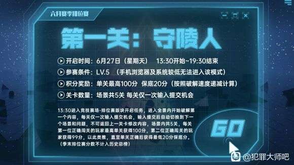 犯罪大师守陵人答案如何解析,六月赛季排位赛第一关的答案怎么解析,这个里面涉及到5个题目,需要大家去一个个的解开,获得到积分才行的,然后向着第二关挑战,下面就来介绍下犯罪大师守陵人答案是什么。