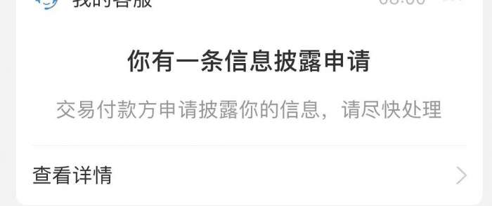 近日有不少支付宝用户都收到了一条消息提示,说是:“你有一条信息披露申请”。