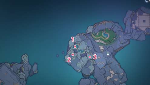 仙灵3:位于池塘西边山崖上的丘丘人营地旁,被枯藤困住,需要我们使用火元素点燃枯藤,放出仙灵。
