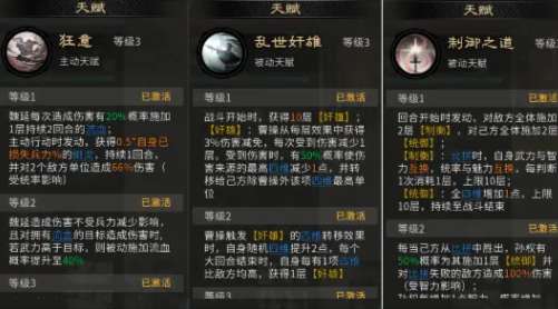 阵容采用双前排+单后排的经典布阵:前排配置两名藤甲兵,提供高额物理减伤与承伤稳定性;后排部署单穿型武将杨军,承担补刀与爆发收尾职能。英雄站位需严格遵循追击联动逻辑——魏延不置于追击格,而曹操必须同时位于魏延与孙权的追击格交汇点上,以确保技能触发链完整。三人均需完成升阶操作,方可激活追击格功能。魏延的核心天赋为“狂意”,1级即生效,其主动行动可锁定两名敌方单位,造成66%武力伤害;曹操天赋“乱世奸雄”在战斗开始时自动赋予自身10层护盾,总计减免30%所受伤害;孙权天赋则于开局同步施加两层“制衡”(作用于敌方)与两层“统御”(作用于己方),奠定控场与增益双重基础。