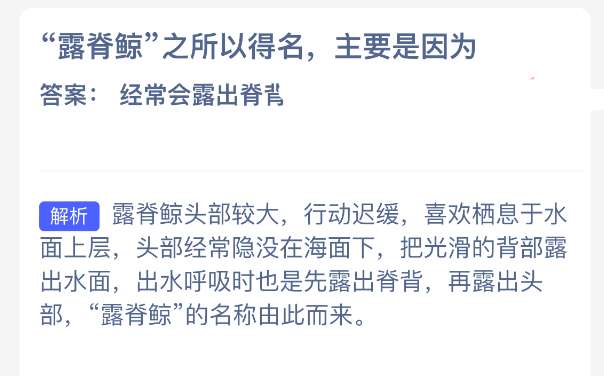 "露脊鲸"之所以得名,主要是因为?【神奇海洋】2026年1月4日新题目已开答!正确答案现已公布,点击领取拼图,一起为修复海洋生态贡献力量!今日正确答案是:【经常会露出脊背】。"露脊鲸"之所以得名,主要是因为经常会露出脊背.