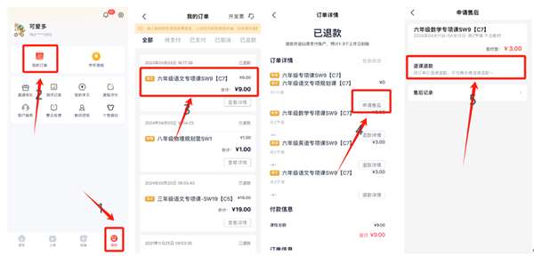 途途课堂app订单怎么退款,登录app后点击我的-我的订单-点击要退款的订单-点击申请售后-点击退课退款,若课程订单有产生调课记录,需要在最新调课后的订单申请。