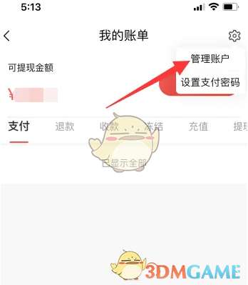2、进入我的账单,点击右上角的设置图标。